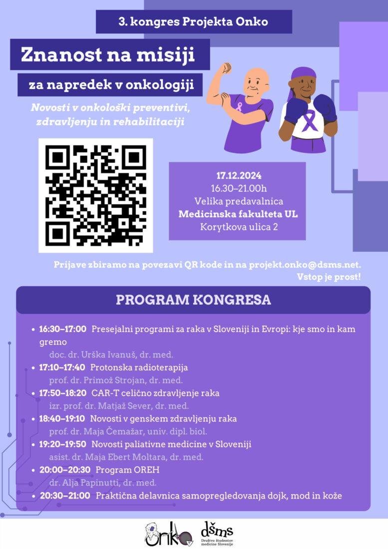 člani Projekta Onko, ki delujejo pod okriljem Društva študentov medicine Slovenije, vljudno vabijo na kongres z naslovom “Znanost na misiji za napredek v onkologiji“. Kongres pripravljajo v sodelovanju s priznanimi strokovnjaki s področja onkologije in hematologije, z namenom izobraževanja o novostih v onkologiji in onkološkem zdravljenju raka v slovenskem prostoru ter ozaveščanja o sodobnih možnostih, ki dandanes v onkologiji obstajajo. Dogodek bo potekal v torek, 17. … Read More